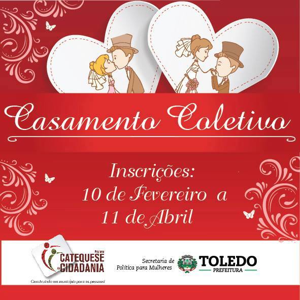 Iniciam no dia 10 de fevereiro as inscrições para o Casamento Coletivo de Toledo. A ação é promovida pela Secretaria de Po...